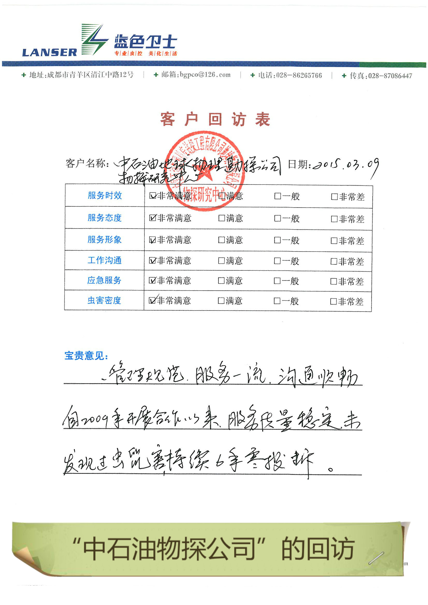 中石油物探公司的回訪評價